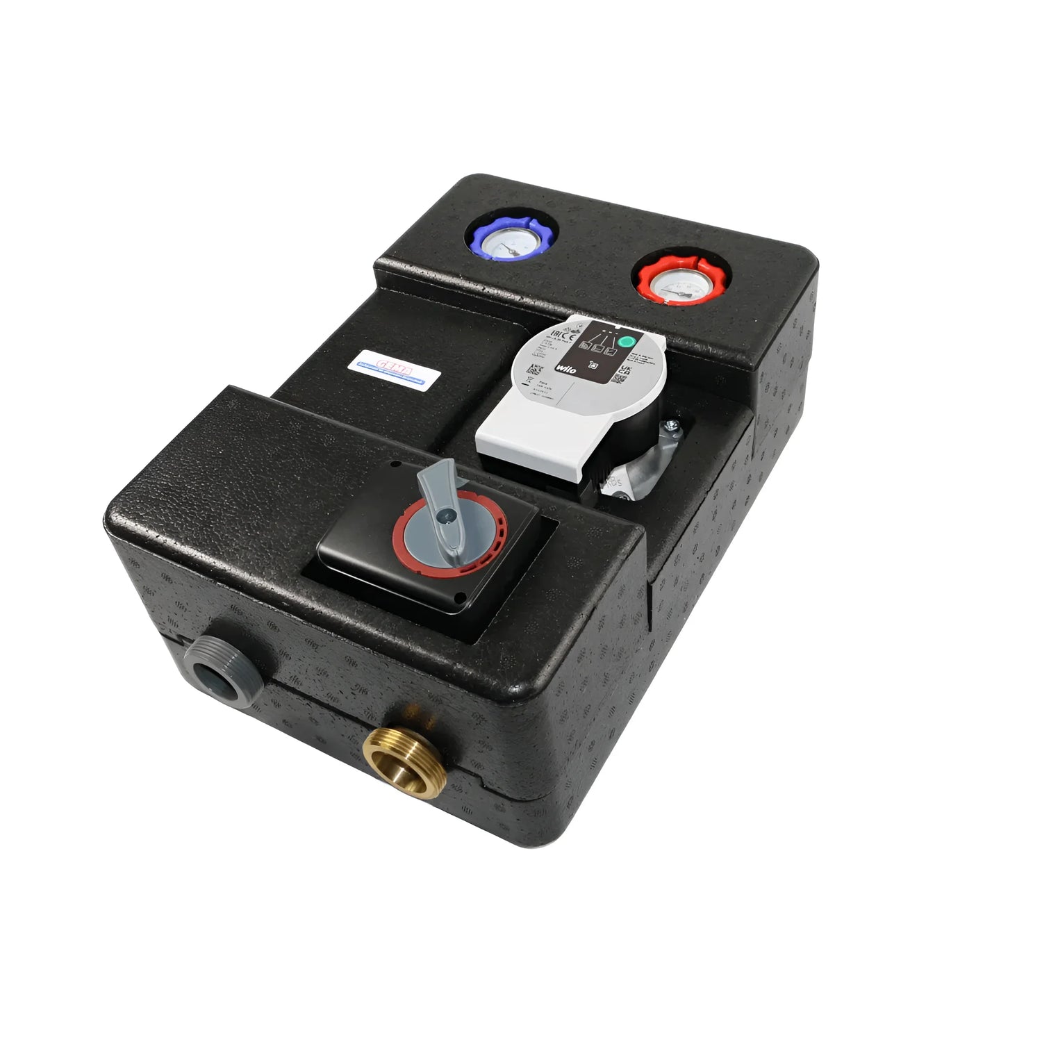 Die GPO-Sunex Pumpengruppe überzeugt durch ihre durchdachte Ausstattung, die Installation und Betrieb erheblich erleichtert. Zwei integrierte Kugelabsperrventile ermöglichen nicht nur eine schnelle Wartung, sondern auch eine präzise Temperaturüberwachung. Das integrierte Thermometer in Vorlauf und Rücklauf liefert Ihnen jederzeit genaue Werte, um den Systemstatus im Blick zu behalten.