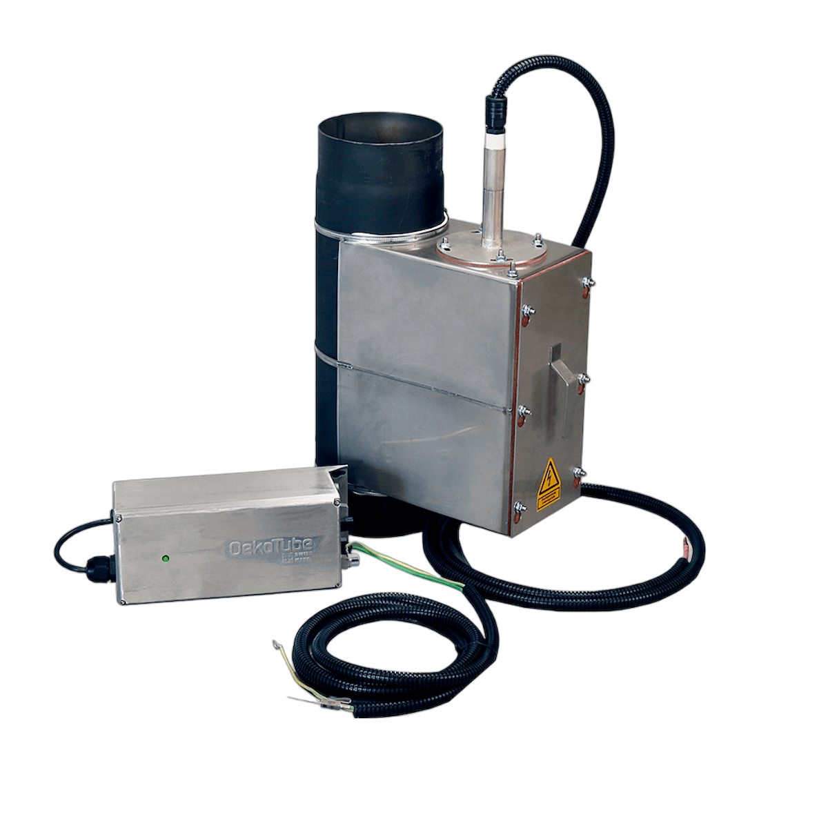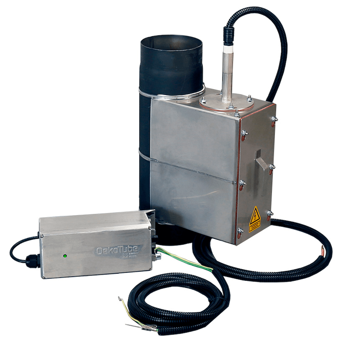 OekoTube-Inside je elektrostatički separator čestica posebno dizajniran za kotlove na drva do 100 kW. Lako se ugrađuje u kotlovnici između kotla i ulaza u dimnjak te osigurava znatno smanjenje emisije čestica.